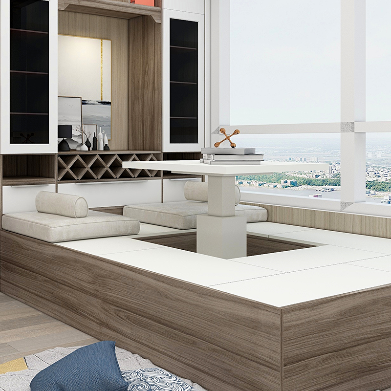 首頁 / 公司產(chǎn)品 / 星空梵高·全屋定制 / 星空梵高·榻榻米 / 整體定制榻榻米 塔特森林·邁阿密胡桃+玉石白榻榻米