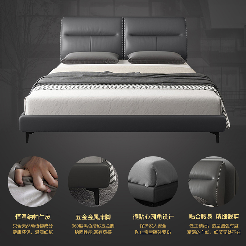 輕奢風格 頭層真皮軟床 真皮世家 8126